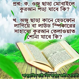 প্রশ্ন: ক. ওজু ছাড়া মোবাইলে কুরআন পড়া যাবে কি?