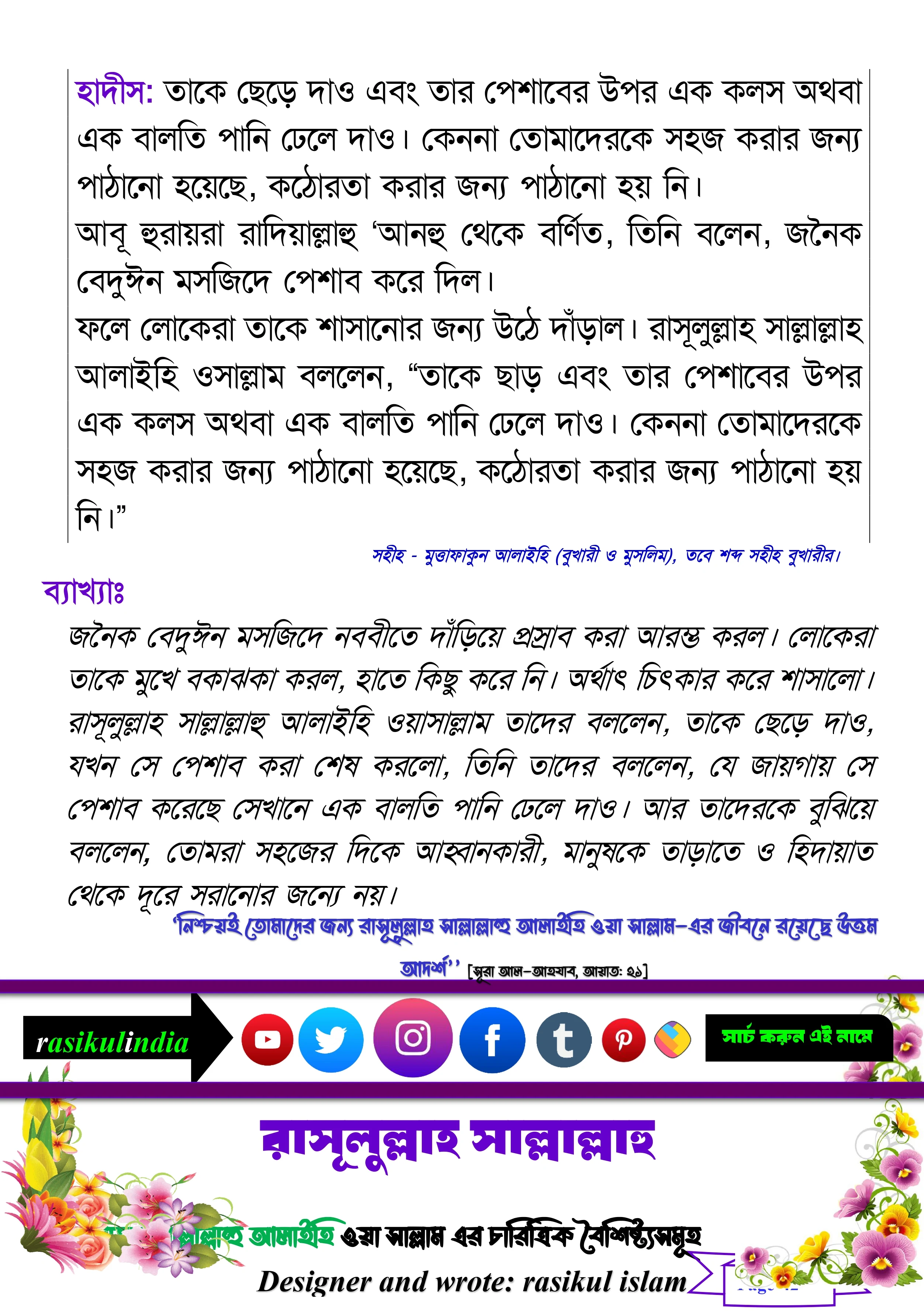 রাসূল সাল্লাল্লাহু আলাইহি ওয়া সাল্লাম এর চারিত্রিক বৈশিষ্ট্যসমূহ wrote rasikul islam